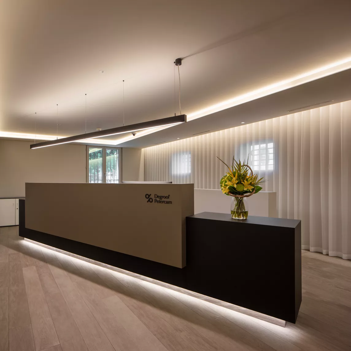 Projet d’aménagement intérieur d’un bâtiment administratif pour une banque privée.