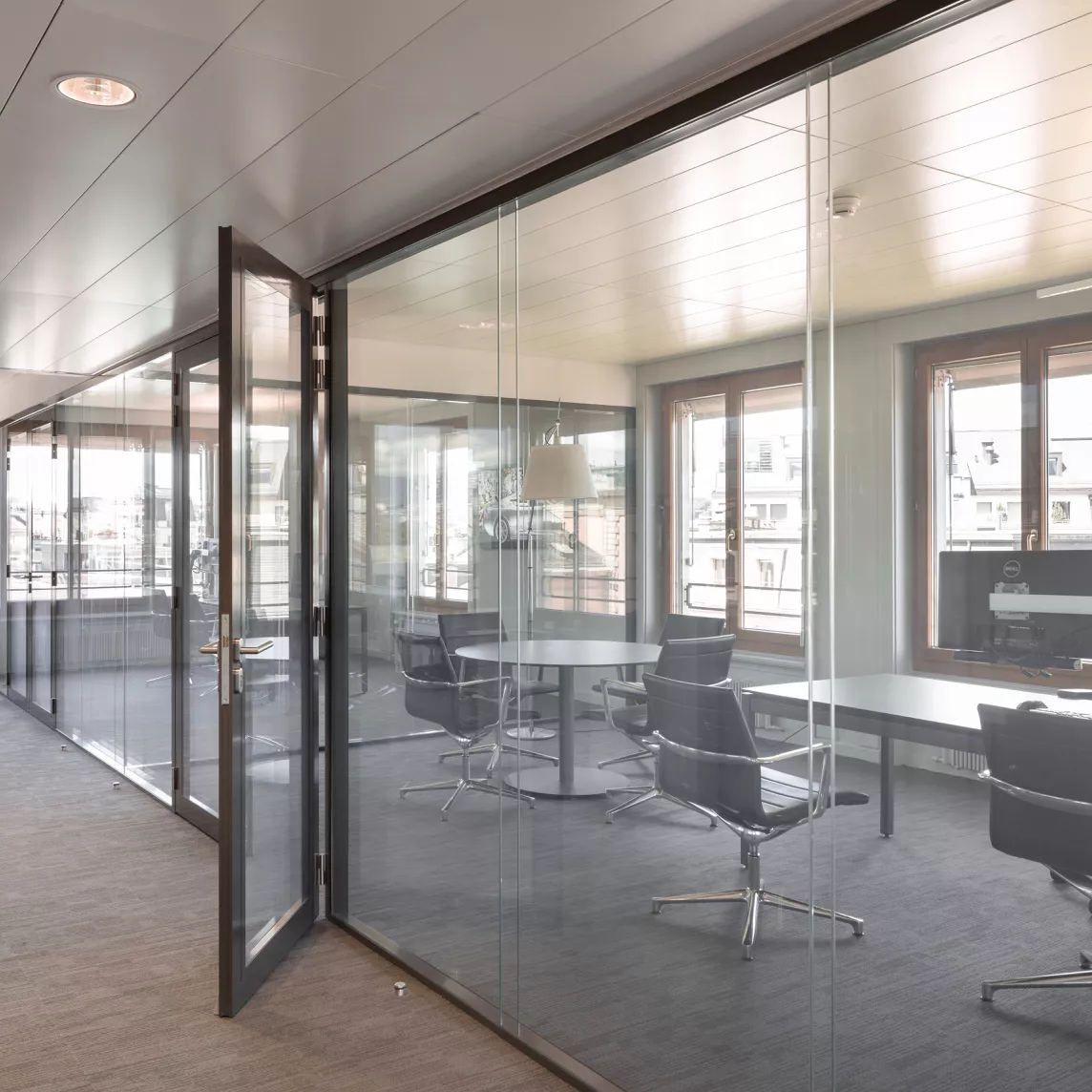 Rénovation complète des 9 étages en adaptant les pièces au projet du client, en tenant compte des conditions structurelles. Les matériaux choisis et les couleurs sobres sont soigneusement intégrés dans les boiseries classiques du salon, mais également dans des bureaux plus modernes et reflètent une architecture élégante et contemporaine.
