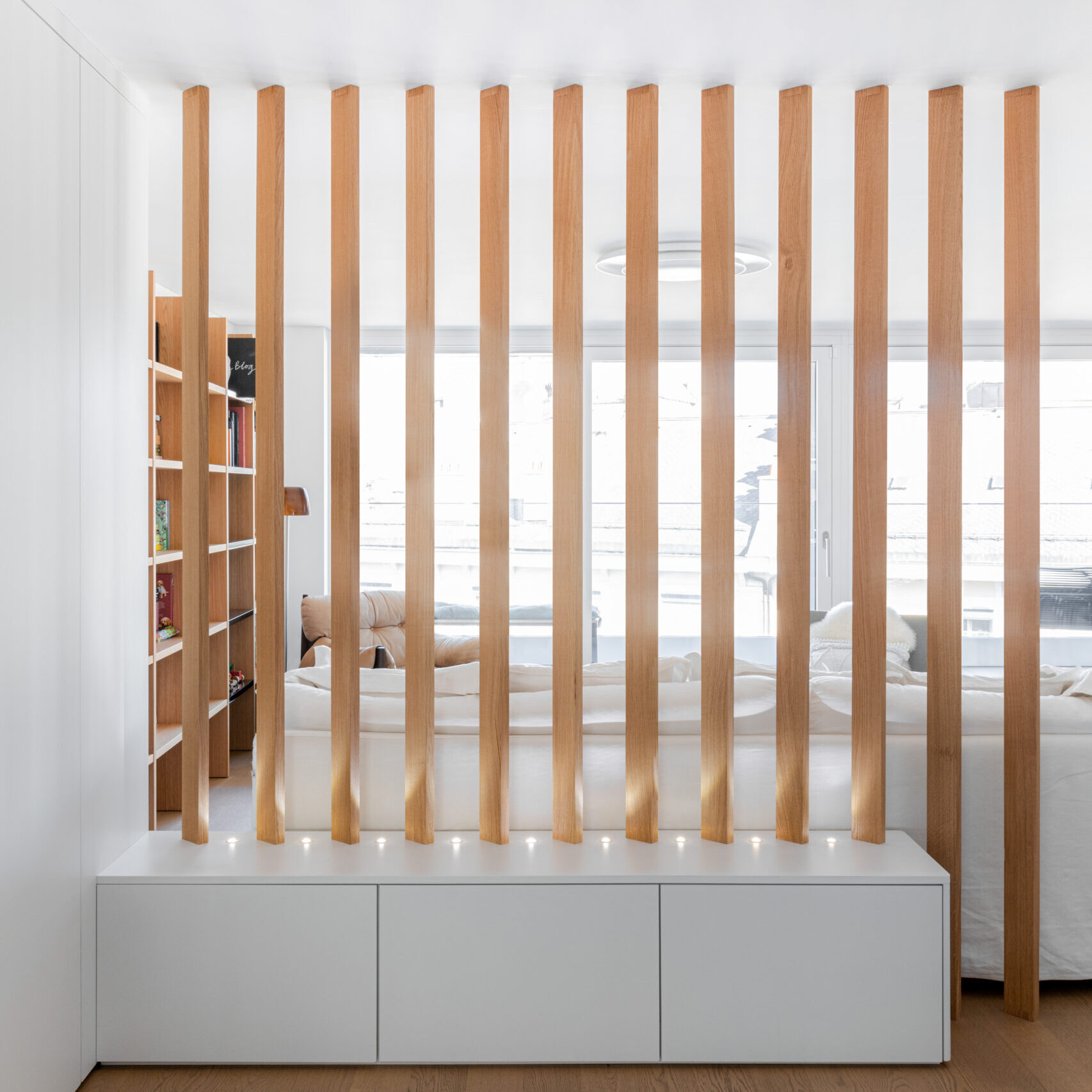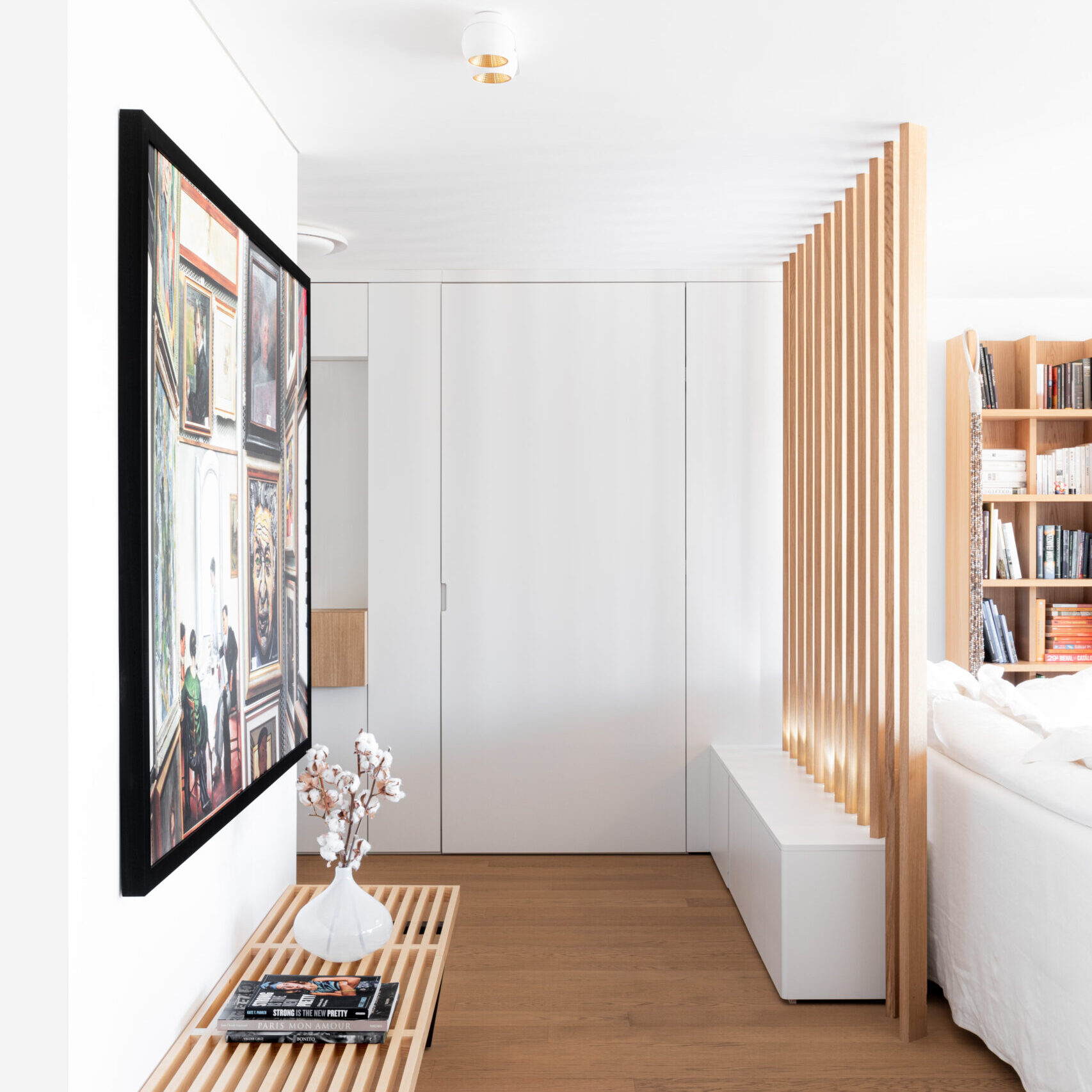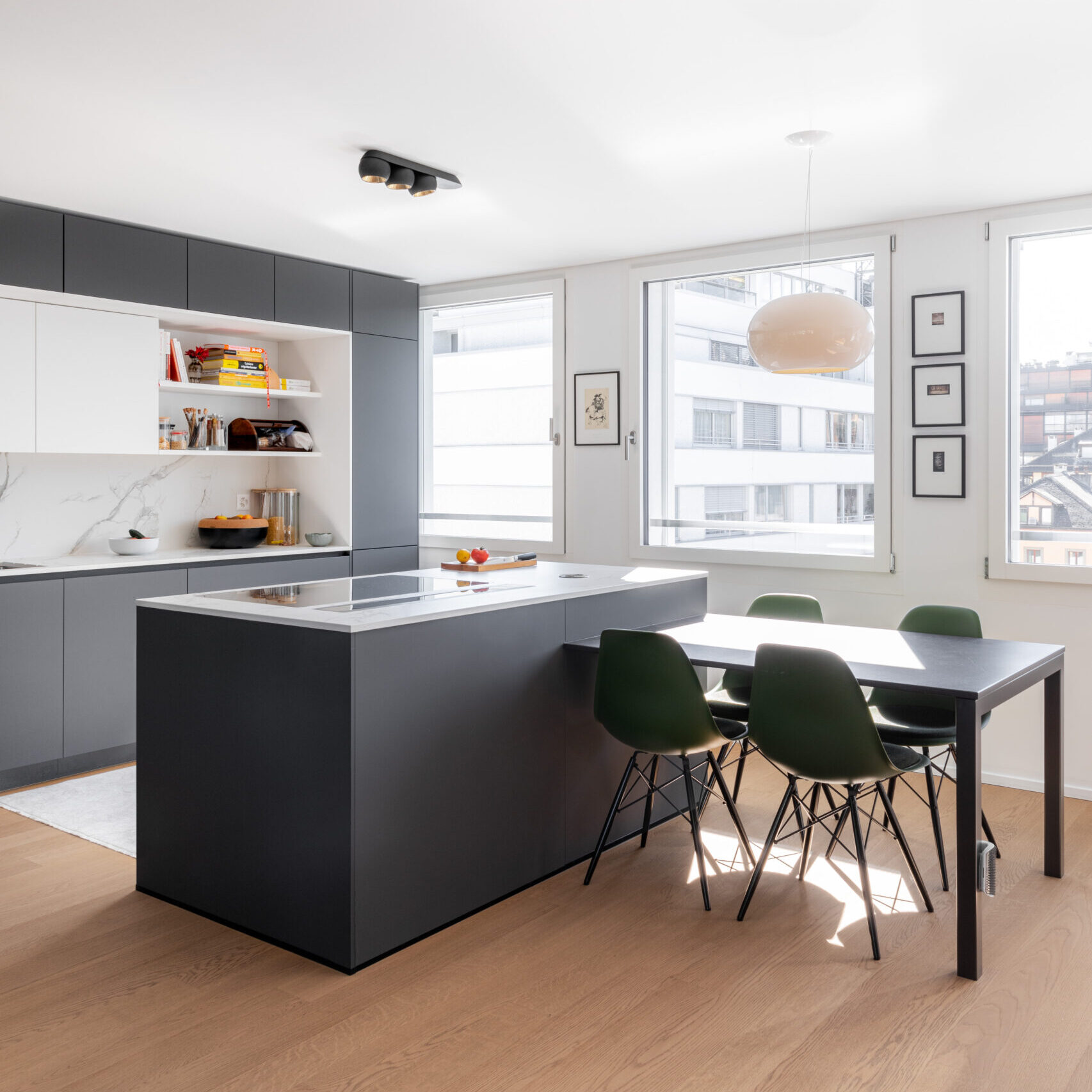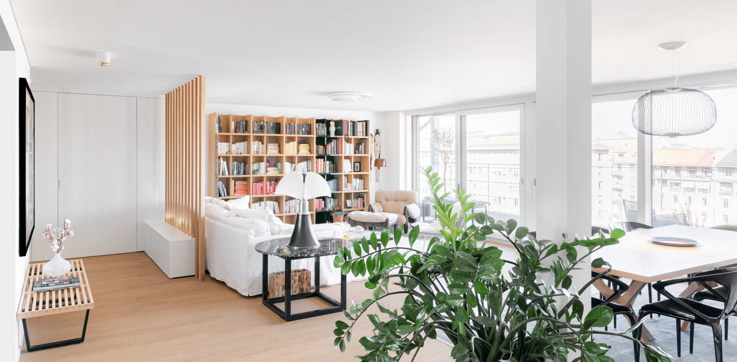 Conseil auprès d’un propriétaire pour l’aménagement d’un appartement privé, créé en surélévation d’un immeuble administratif. Redistribution des espaces, choix de matériaux de finition, concept cuisine et aménagement sur-mesure dans l’entrée de l’appartement.
