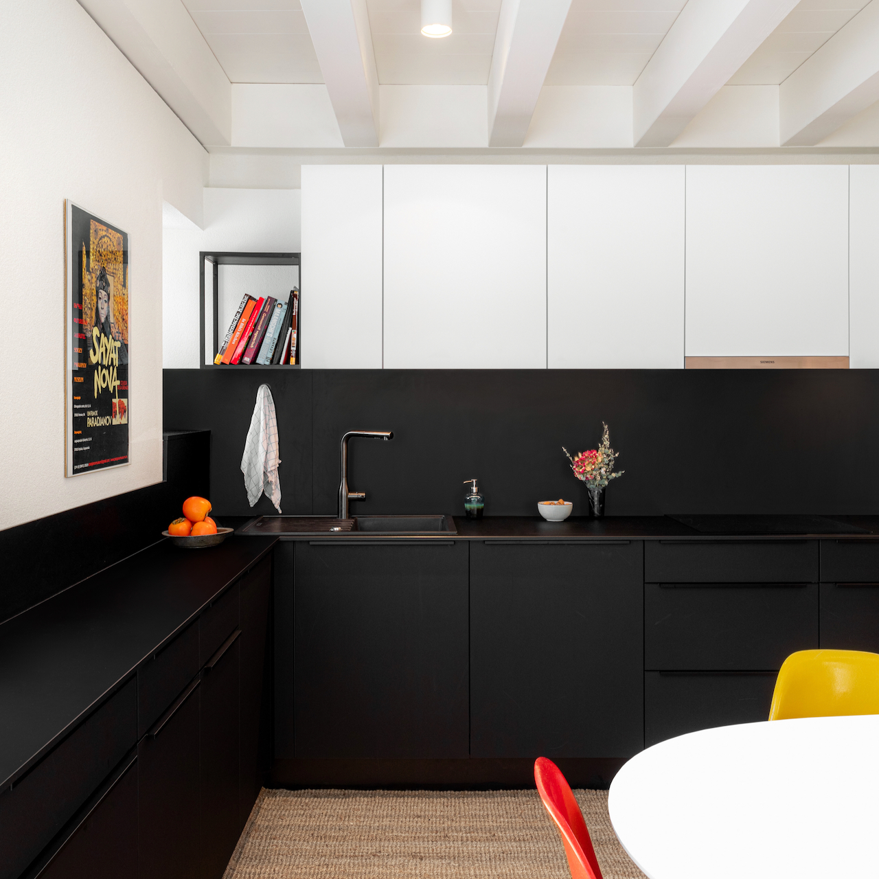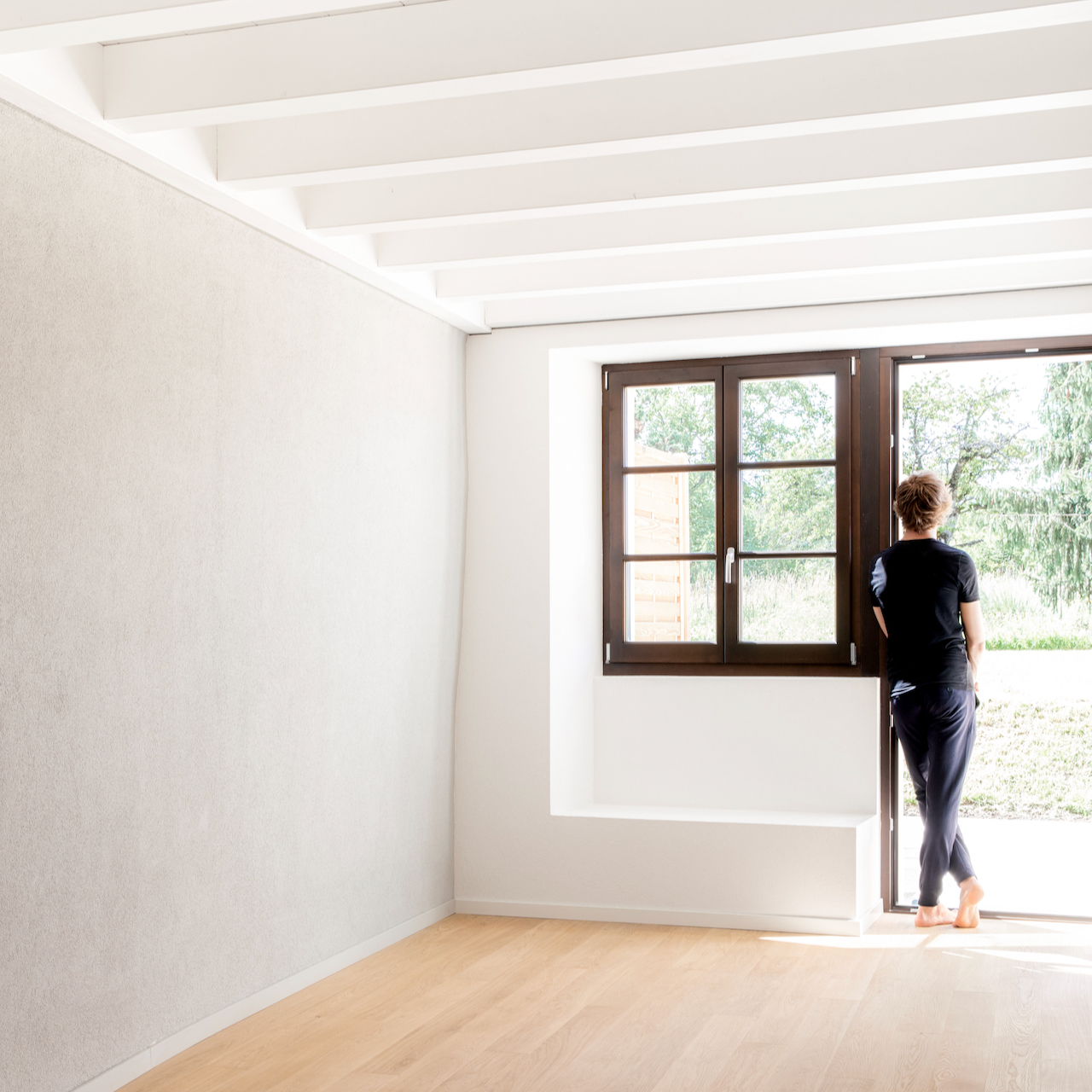 La réalisation de ce projet répond aux besoins des propriétaires par une architecture contemporaine aux lignes épurées en contraste des structures porteuses complexes de la bâtisse.