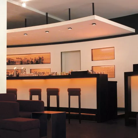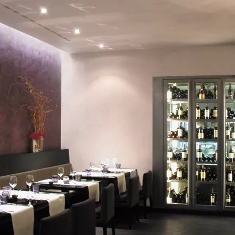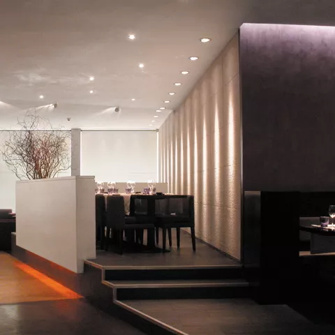 Transformation d’une arcade commerciale en restaurant «gastro-bar-lounge». Réalisation d’une cuisine professionnelle avec une cave à vin transparente reliant la salle. Concept architectural contemporain.